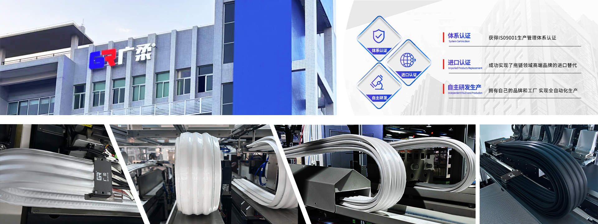 廣柔無塵拖鏈是惠州中科智能科技有限公司打造的無塵拖鏈品牌。中科智能成立于2019年,作為廣柔品牌的銷售中心,致力于企業產品在國內外市場的推廣與應用,并不斷優化和提升品牌價值。2025年,廣柔在江蘇無錫成立了無錫廣柔技術有限公司,組建本地化團隊服務華東地區客戶。廣柔無塵拖鏈產品具有CE、ROHS認證,以及IPA、V0阻燃等級和SGS檢測報告,被廣泛應用于潔凈室、半導體芯片、光學檢測、醫療設備和新能源等高新技術領域。無塵拖鏈作為潔凈室高端電纜運動系統的核心部件,具有耐磨擦、不釋氣、不積塵、防靜電、抗酸堿及老化等特性。中科智能依托關鍵材料技術及護套后端核心自動化生產成型工藝,已建立潔凈自動化車間,實現全自動化生產,并在質量管控方面融入高穩定性的科學方法,獲得ISO9001生產管理體系認證。目前,廣柔無塵拖鏈的產品質量和穩定性位居國內領先水平,已達到國際先進標準,成功實現了拖鏈領域高端品牌的進口替代。